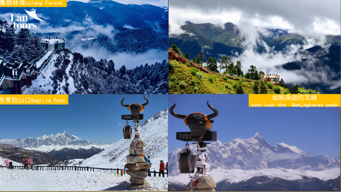 - Từ đài quan sát Lulang Linhai nơi có thể ngắm cảnh mặt trời lặn, biển mây, những cánh rừng bất tận và vẻ đẹp hùng vĩ, du khách ngắm nhìn đỉnh Segrila hùng vĩ cao 4728m so với mực nước biển, là một trong bốn ngọn núi thần lớn ở Tây Tạng,