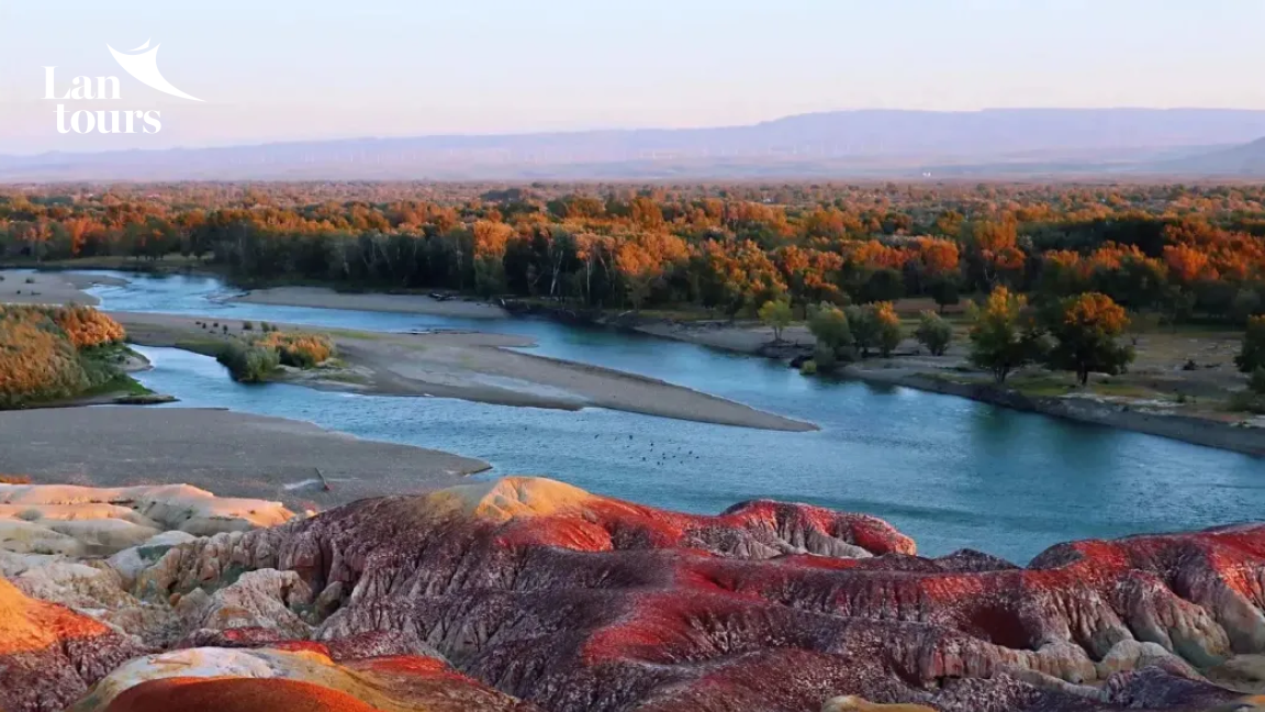 Chiều, quý khách đáp xe di chuyển về BurJin, tham quan Vịnh Ngũ Sắc nằm ở hạt Burqin, cách thủ phủ Tân Cương 650km. du khách sẽ vô cùng ấn tượng trước bãi đá khổng lồ với cấu tạo địa hình nhiều màu sắc và hình dáng độc đáo. Đặc sắc hơn tất cả những bãi đá cầu vồng ở nơi khác trên thế giới, Vịnh Ngũ Sắc ở Burqin là sự kết hợp của những bãi đá nhiều màu nằm giữa một rừng cây xanh và dòng Irtysh chảy xuyên qua. Lúc hoàng hôn dưới những tia nắng cuối ngày, bảy sắc cầu vồng của bãi đá vô cùng rực rỡ.