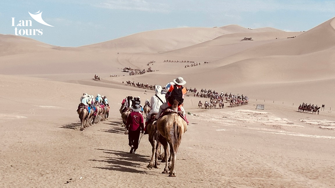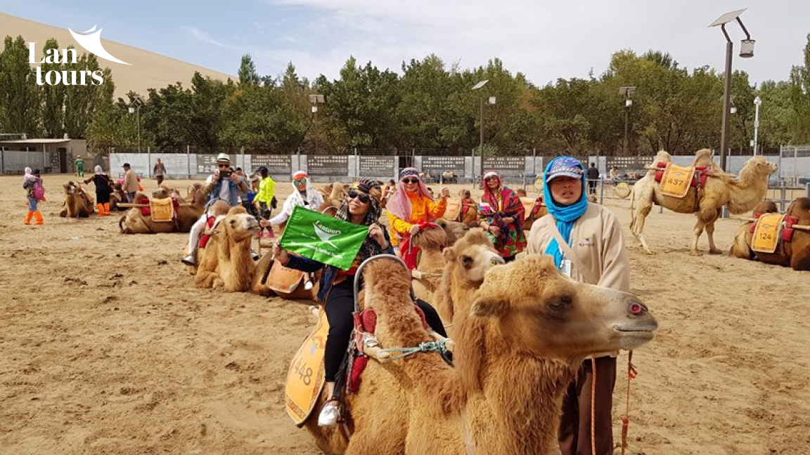 - Cưỡi lạc đà 2 bướu trên sa mạc Minh Sa một phần của Gobi nơi có suối Nguyệt Nha hình bán nguyệt kiều diễm