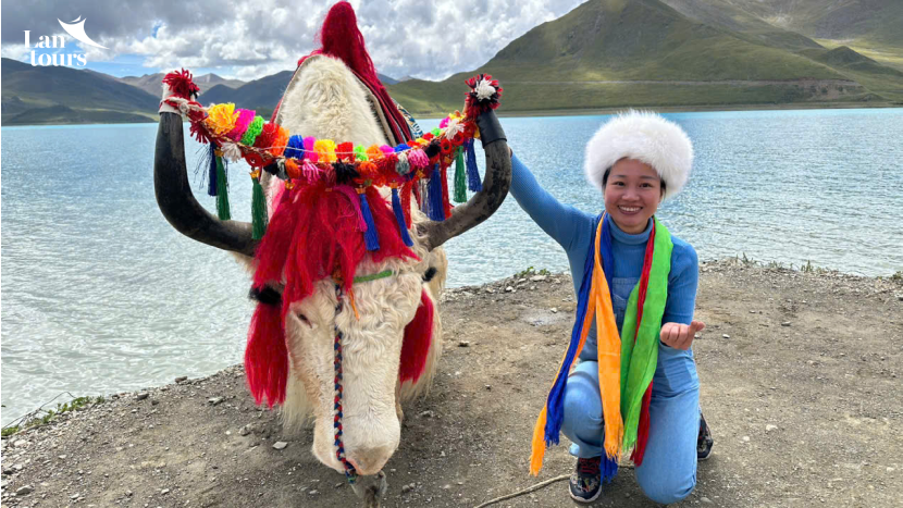 - Trên đường đoàn ghé thăm và chiêm ngưỡng thánh hồ Dương Thác Ung Trác hay hồ Yamdrok – một trong 4 thánh hồ lớn nhất và đẹp nhất của Tây Tạng, Quý khách có thể tự do chụp ảnh với bò Yak (chi phí tự túc).