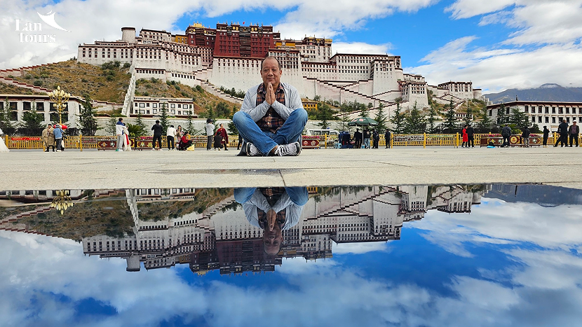 - Sáng đoàn thăm cung điện Potala – cung điện nằm ở vị trí cao nhất thế giới được xây dựng ở độ cao hơn 3.600 m. Potala – theo tiếng Tây Tạng còn là chỗ ở của QuánThế Âm Bồ Tát và cũng là nơi ở của các đời Đạt-lại Lạt-ma cho đến Dalai Lama thứ 14, đây là một quần thể kiến trúc tiêu biểu cho Phật giáo Tây Tạng. Đoàn thăm hai tầng lầu chính là Portrang Karpo (Bạch Cung) và Portrang Marpo (Hồng Cung).