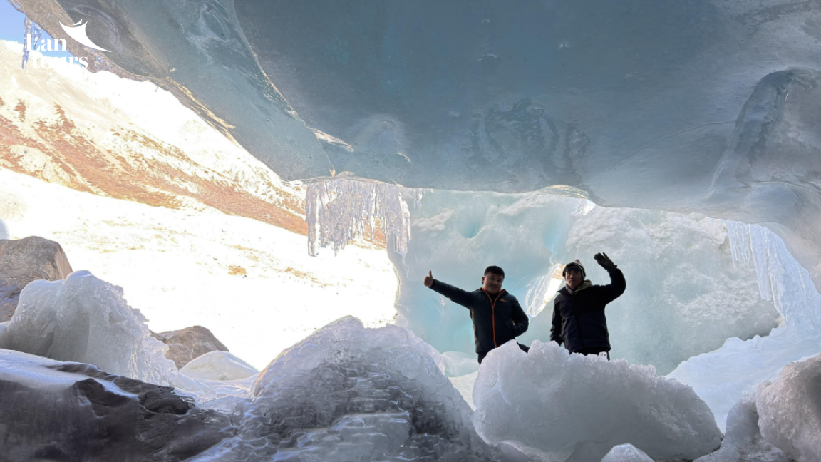 - Đoàn thăm sông băng Nha Long là một trong những sông băng đẹp nhất quần thể sông băng Lai Cổ những nhũ băng tuyệt đẹp và những động băng triệu năm tuổi trong như thủy tinh và cứng chắc. Người Tạng cổ cả triệu năm trước đã từng trú ẩn tại những động băng kỳ diệu này.