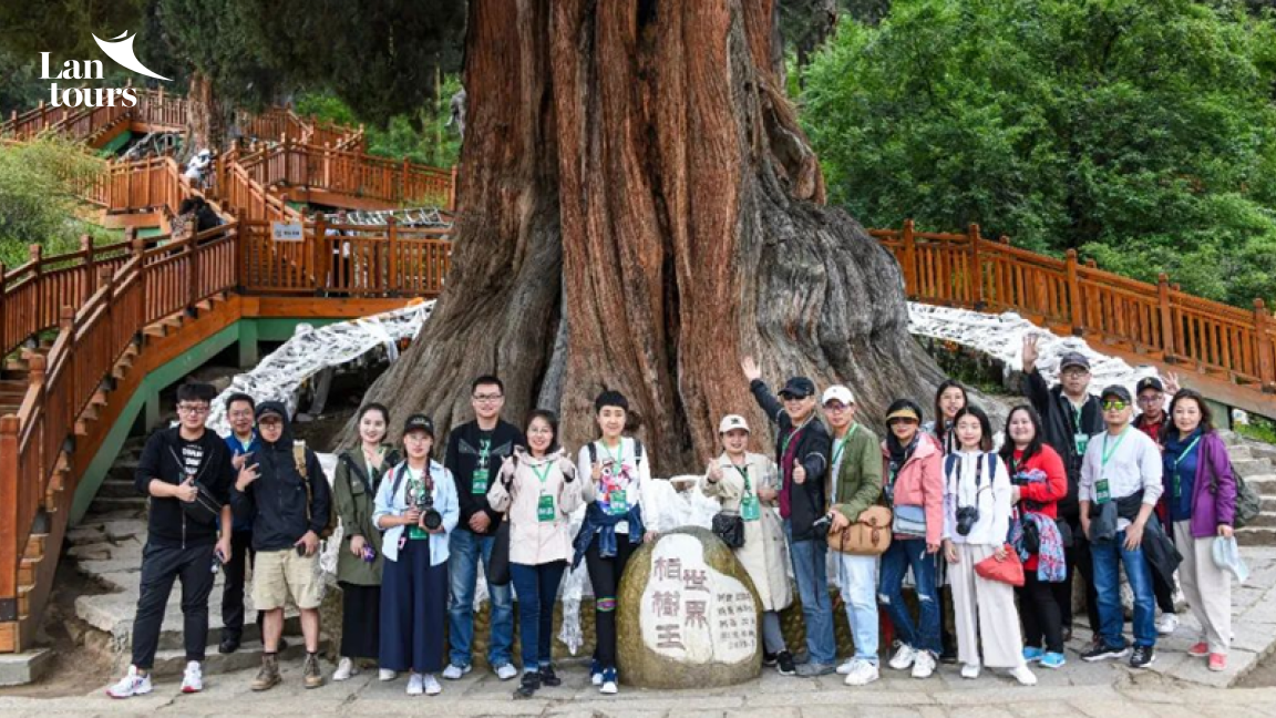 - Chiều đoàn thăm Công viên cây bách khổng lồ ở độ cao 3.000 mét so với mực nước biển. Một cây bách khổng lồ trong công viên đã 2.000-2.500 năm tuổi và được người dân địa phương bảo vệ như một “cây thiêng”.